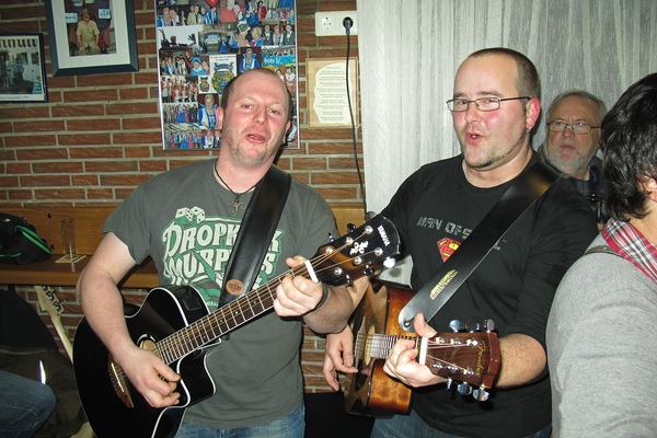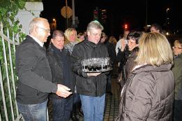 Das Anbringen des Schildes war natürlich der Höhepunkt des Abends. In einer großen Runde mit musikalischer Unterstützung bereiteten wir uns auf dieses Ereignis vor.